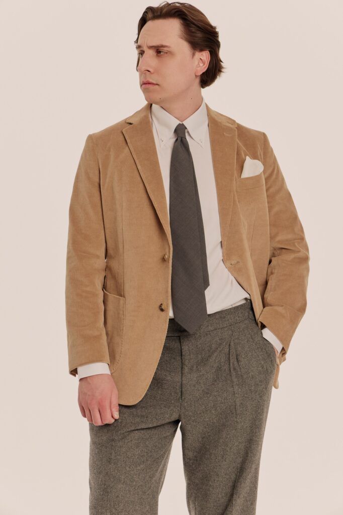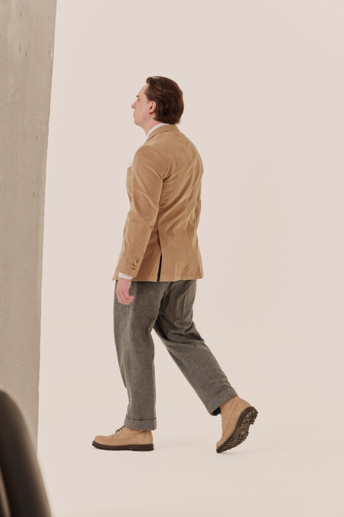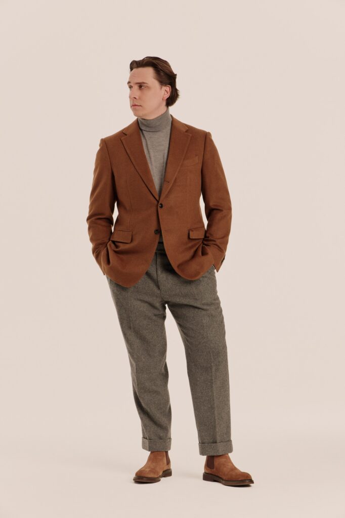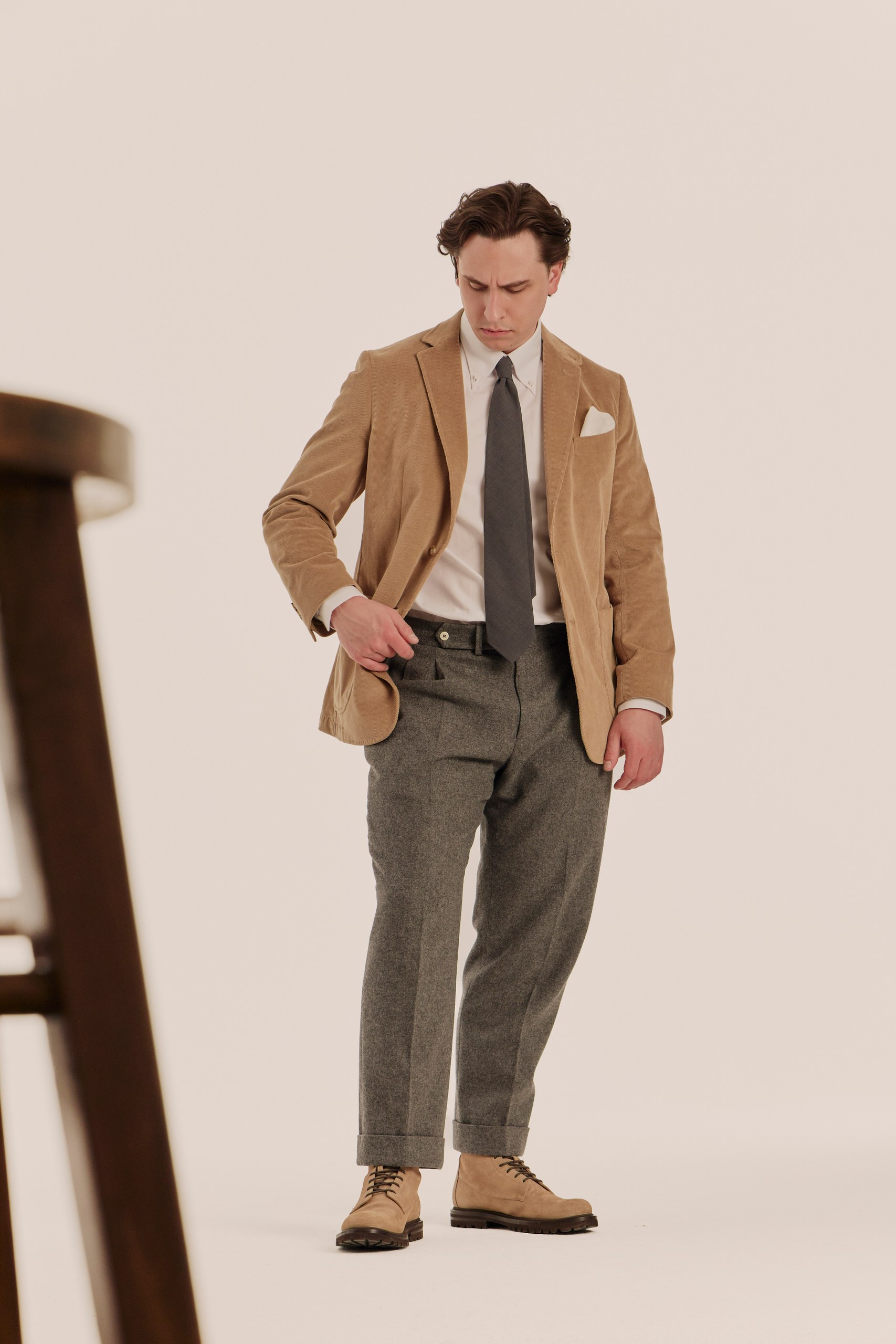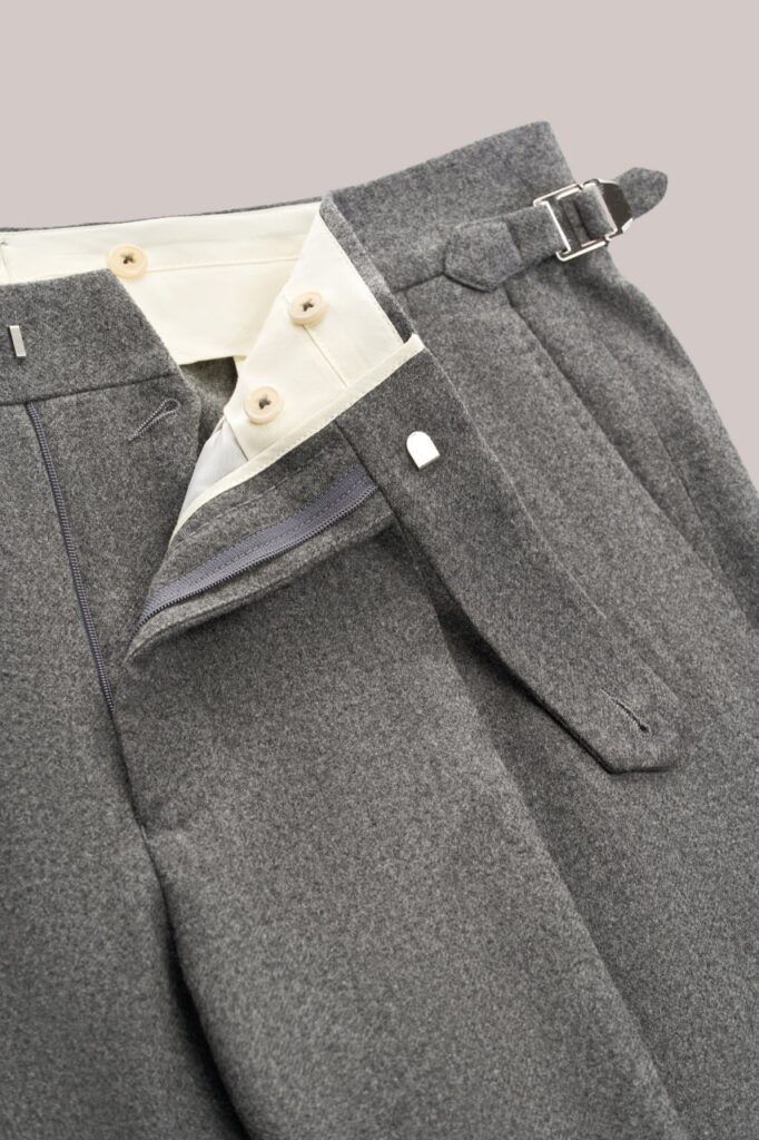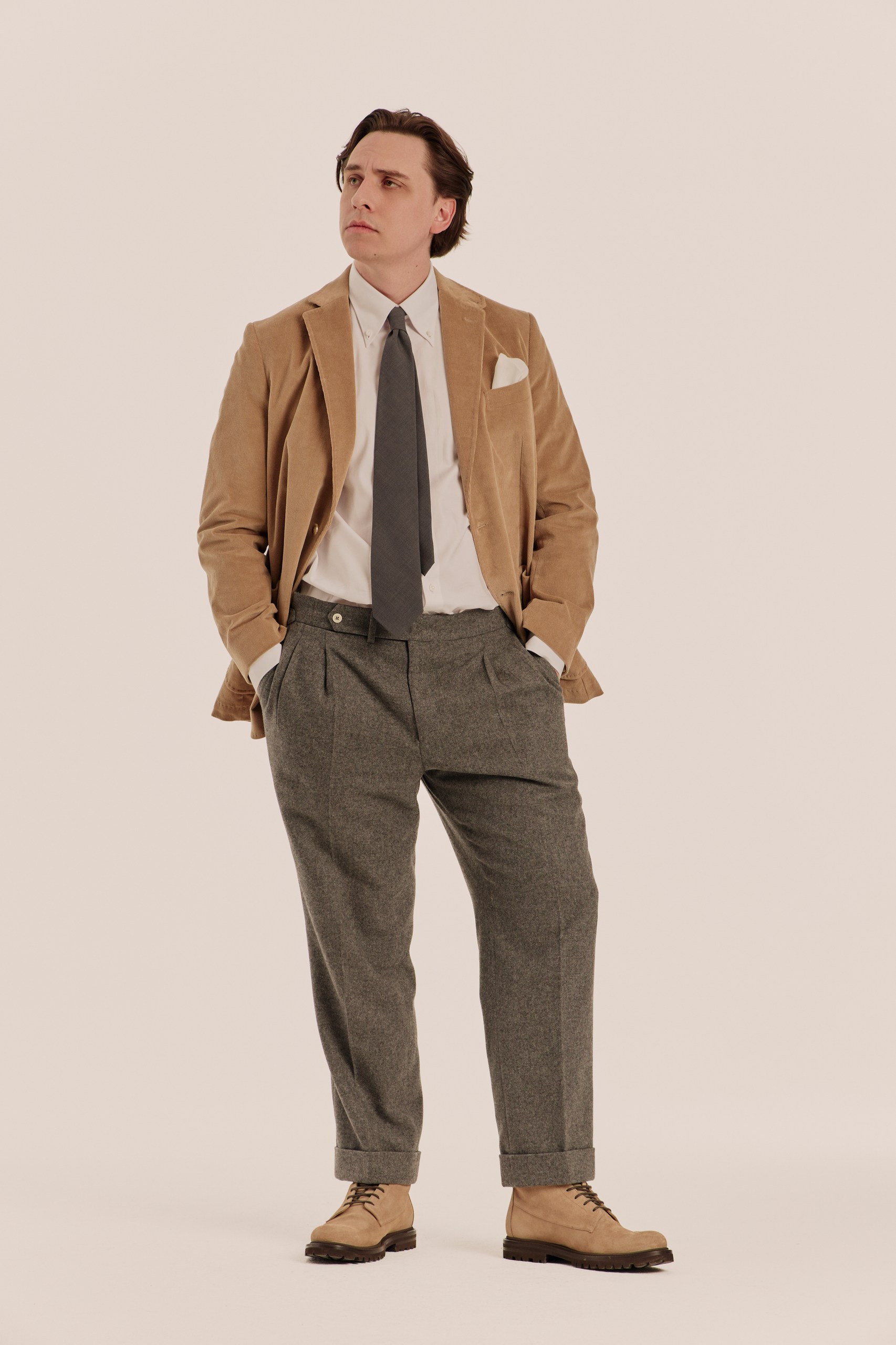 Брюки свободного кроя из фланели VBC, созданные для тех, кто ценит комфорт без потери элегантности. Смесь virgin-шерсти, шёлка и кашемира даёт мягкость, природную теплоту и лёгкий благородный блеск, который заметен только при близком взгляде. Ткань плотная, но дышащая — держит форму и остаётся приятной к телу даже при активном движении. Глубокий оттенок тёмно-серого делает модель универсальной: такие брюки легко вписываются как в деловой, так и в повседневный образ, особенно в сочетании с пиджаками из фланели или кашемировыми поло. Это вещь, которая придаёт образу спокойную уверенность без усилий.