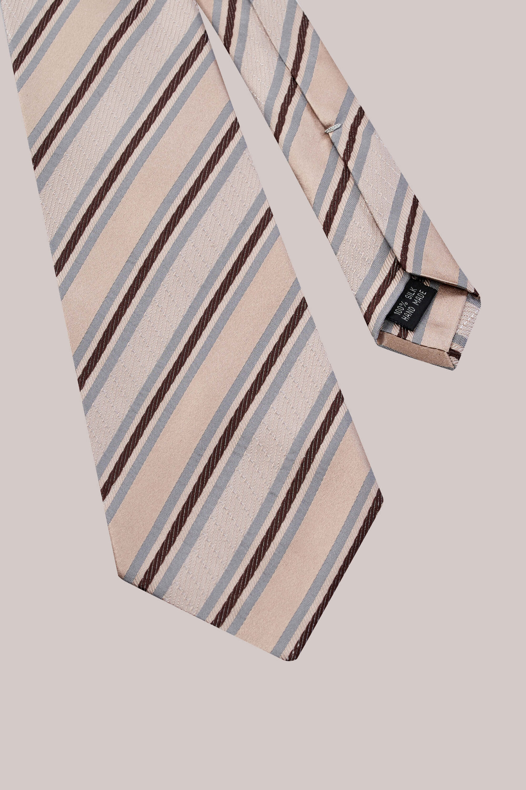 Галстук ручной работы в технике 7-fold — вершина классического портновского мастерства. Выполнен без подкладки из цельного куска натурального шелка, сложенного семь раз, что придаёт изделию естественный объём и идеальную драпировку. Мягкий, живой, он ложится по форме узла без усилий и раскрывает глубину ткани при каждом движении. Такой галстук выбирают мужчины, которые разбираются в деталях и ценят подлинную эстетику ремесла.