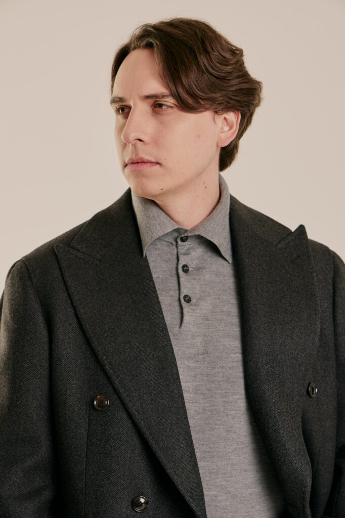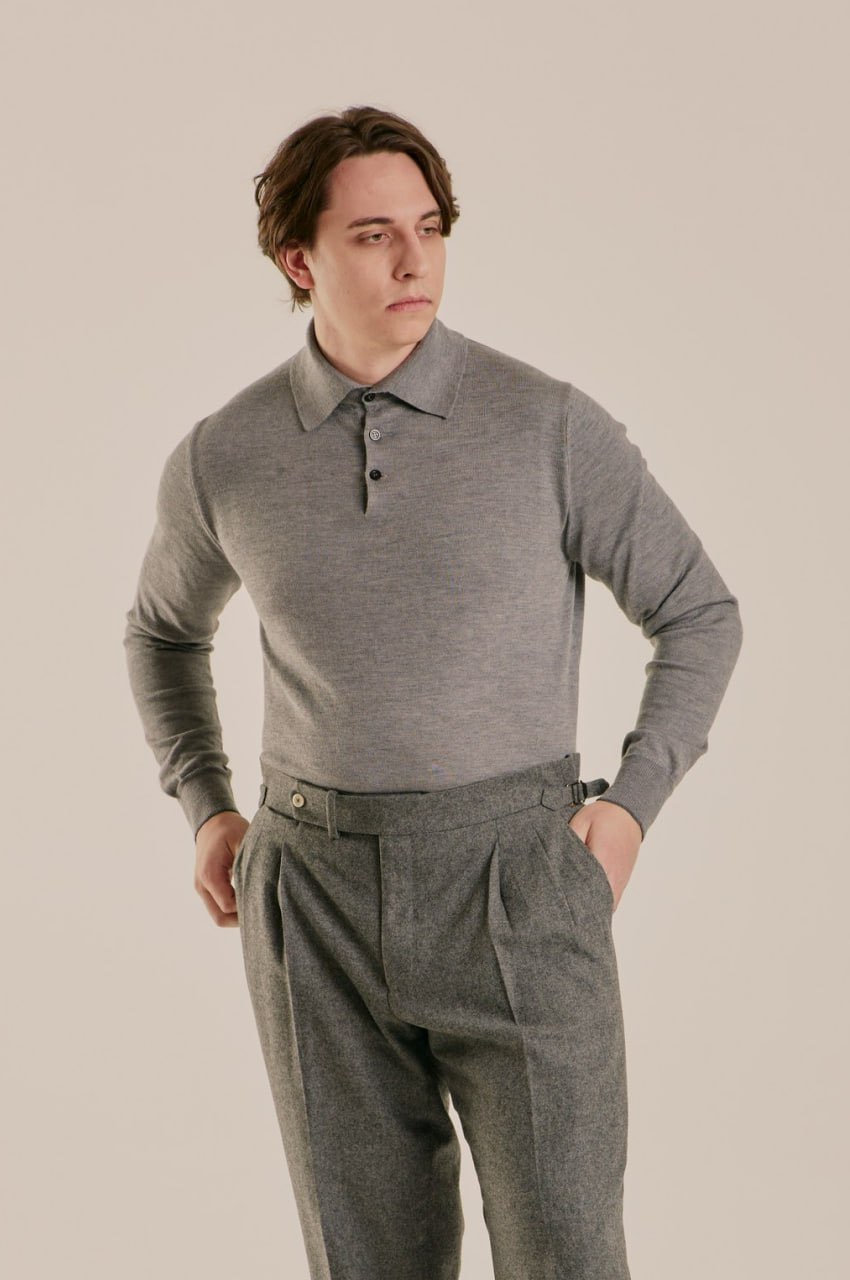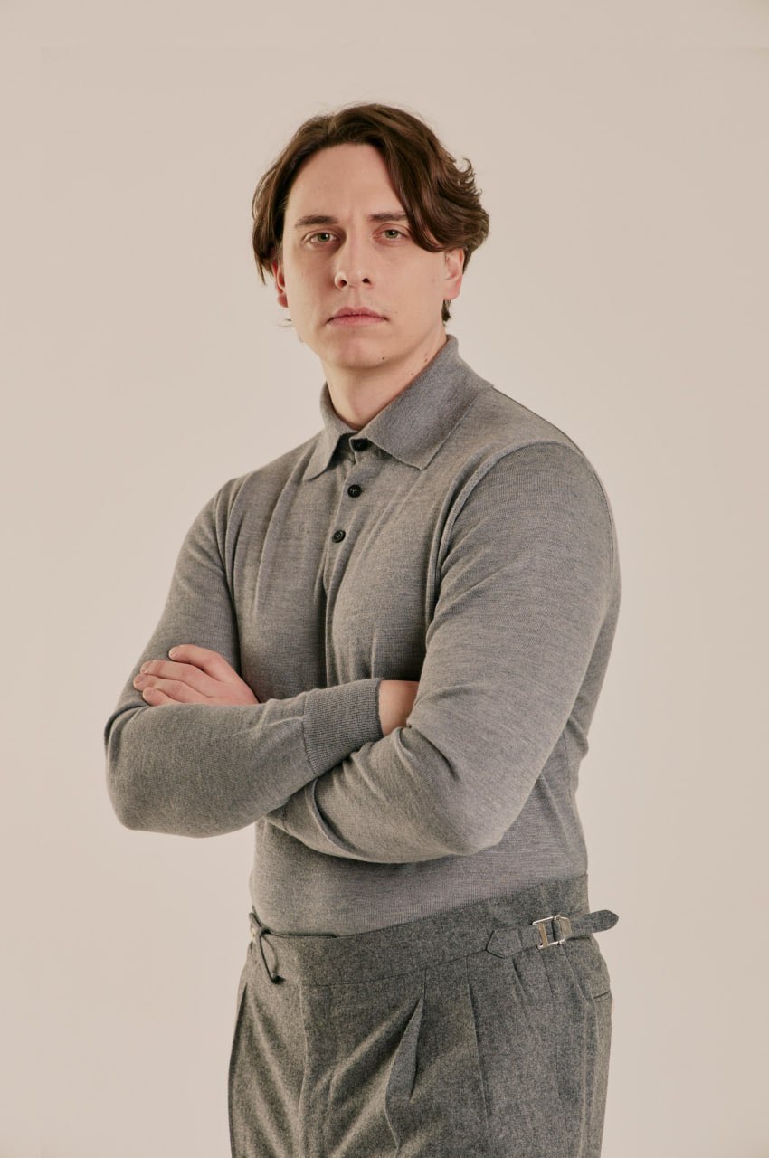 Поло, которое создаёт ощущение уюта, но не перегревает. Смесь кашемира и шёлка даёт идеальный баланс между теплом и лёгкостью: в нём комфортно и в прохладном офисе, и на улице под пальто. Шёлк добавляет мягкого блеска и делает ткань более гладкой на коже, а кашемир сохраняет природную теплоёмкость и пластичность. Это не вещь «на мороз», а универсальный слой для жизни в ритме города — когда хочется тепла, но без тяжести.
