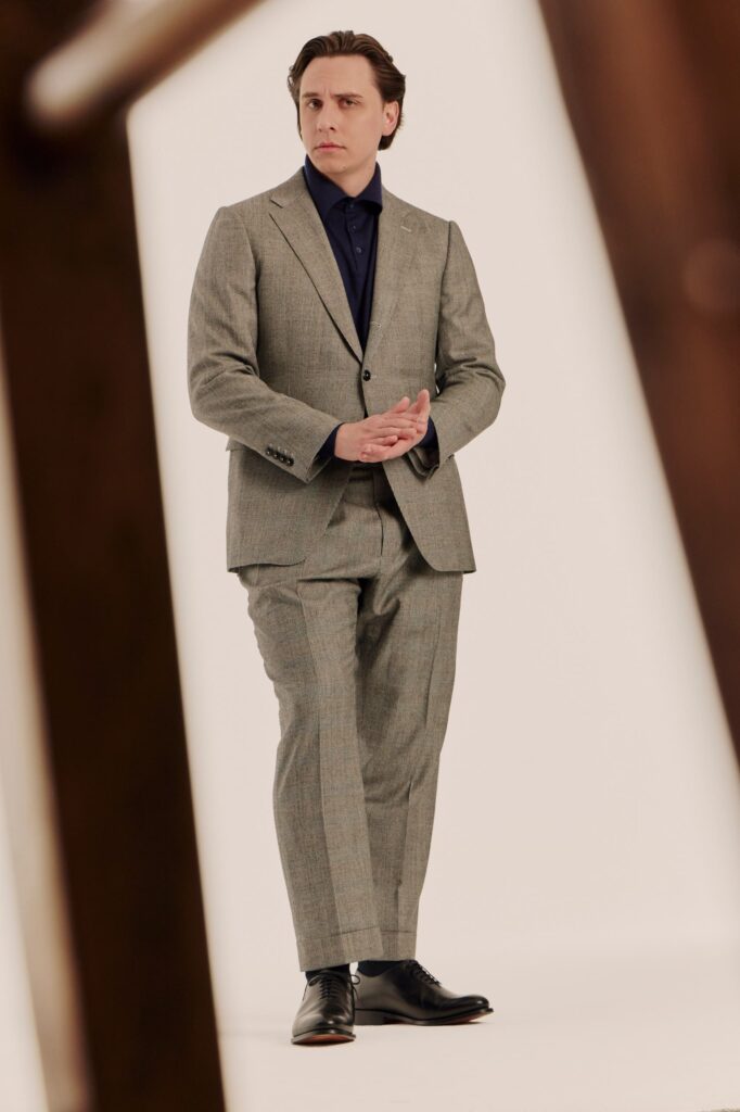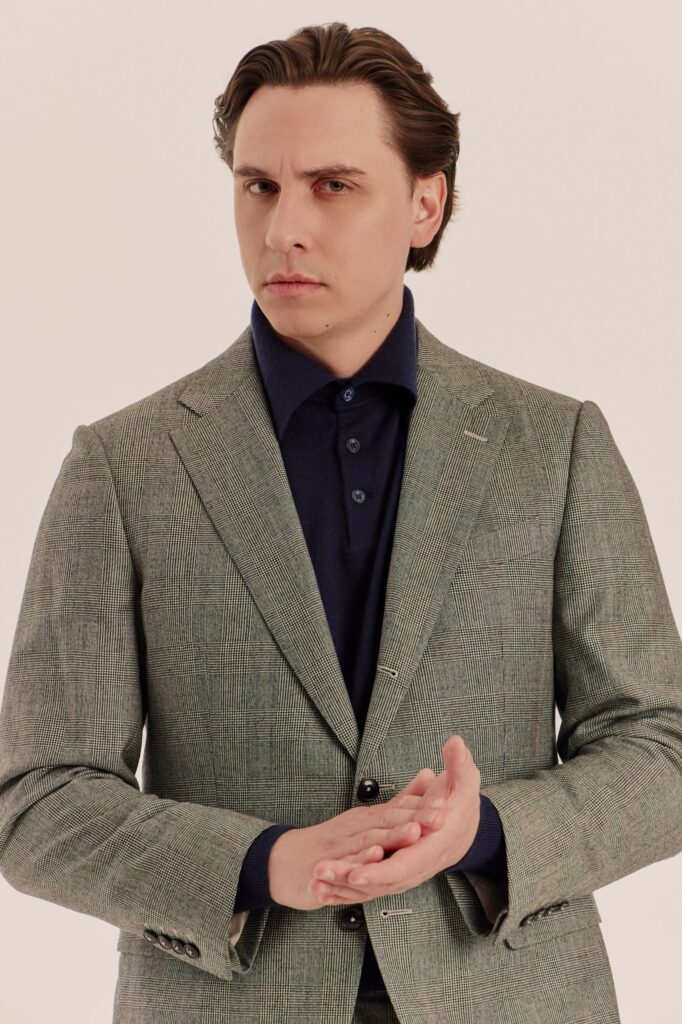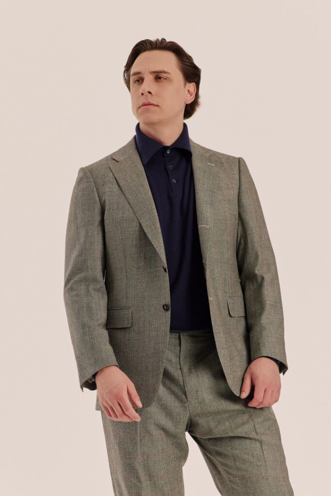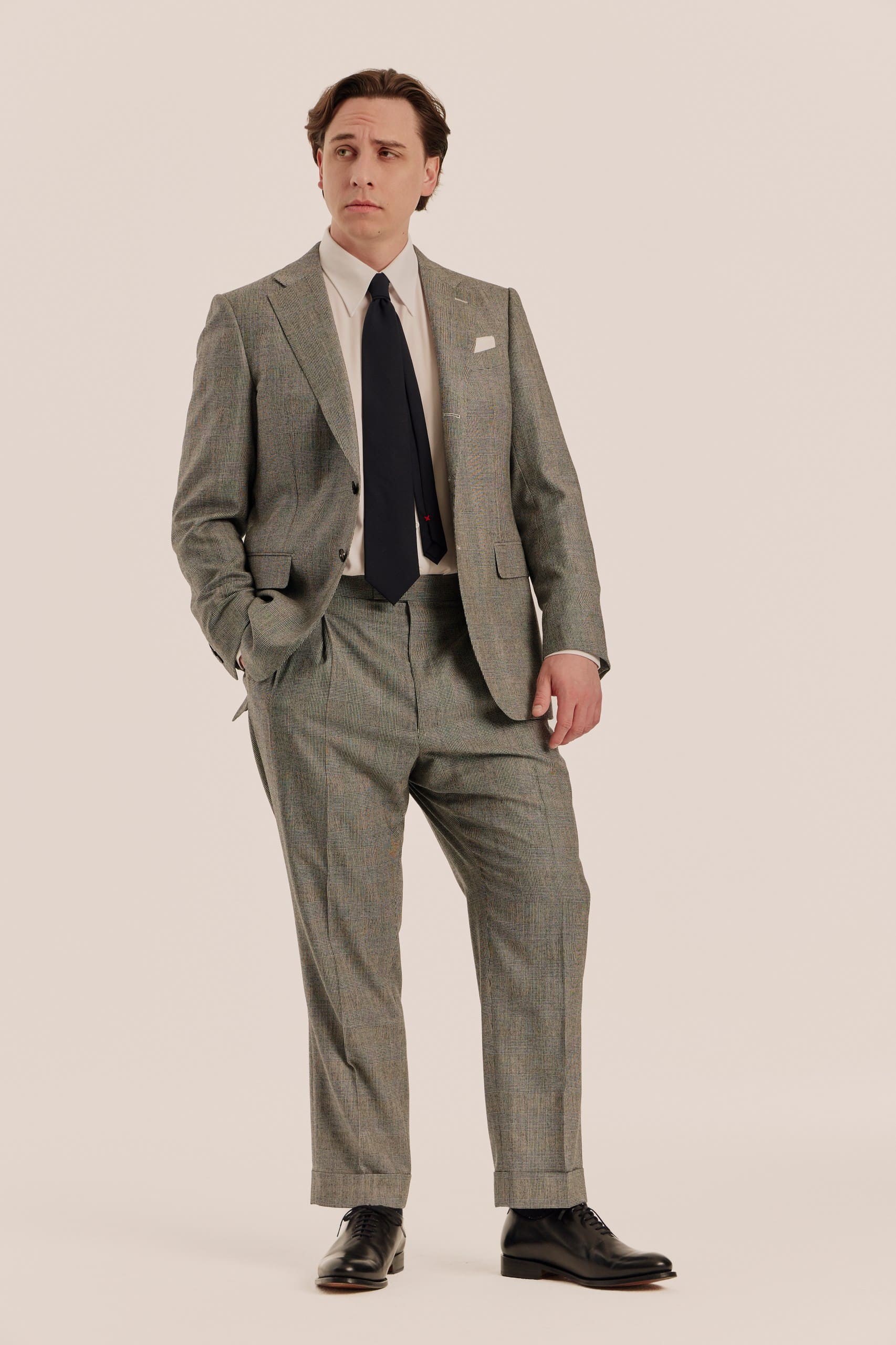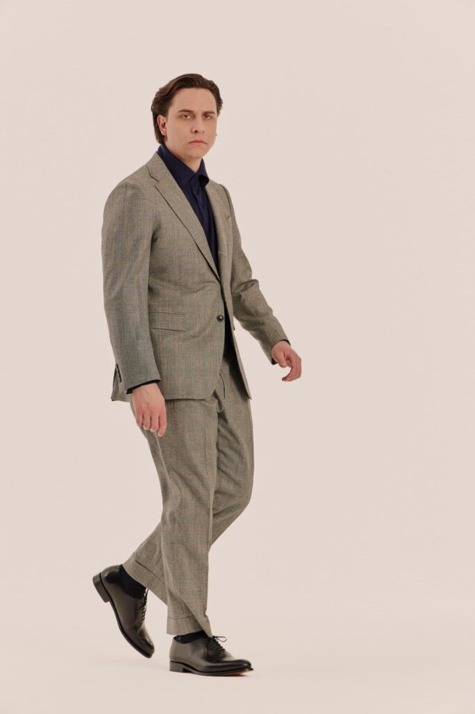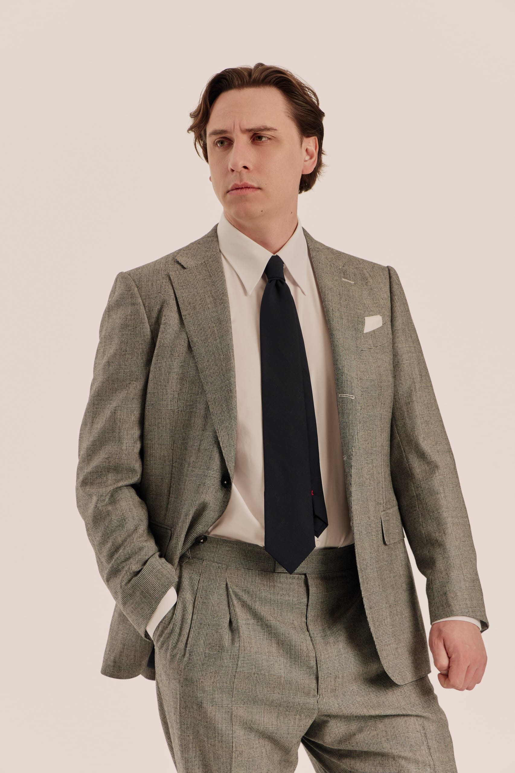 Однобортный классический «Уэльский» из фланели VBC в оттенке Silver Grey. В английской традиции это формальный костюм. В российской реальности – строгий деловой. Мягкое итальянское плечо и облегчённая full-canvas конструкция дают комфорт в движении, сохраняя собранный силуэт и ощущение структуры. Это костюм для взрослого мужчины, для которого важны порядок и дисциплина даже вне жёсткого дресс-кода.