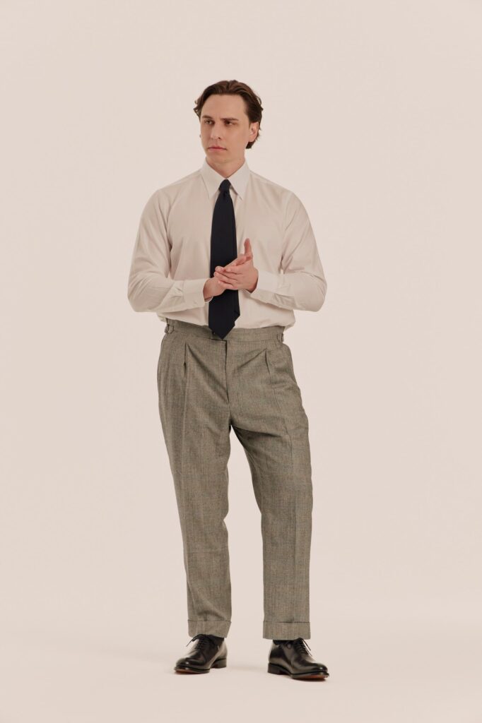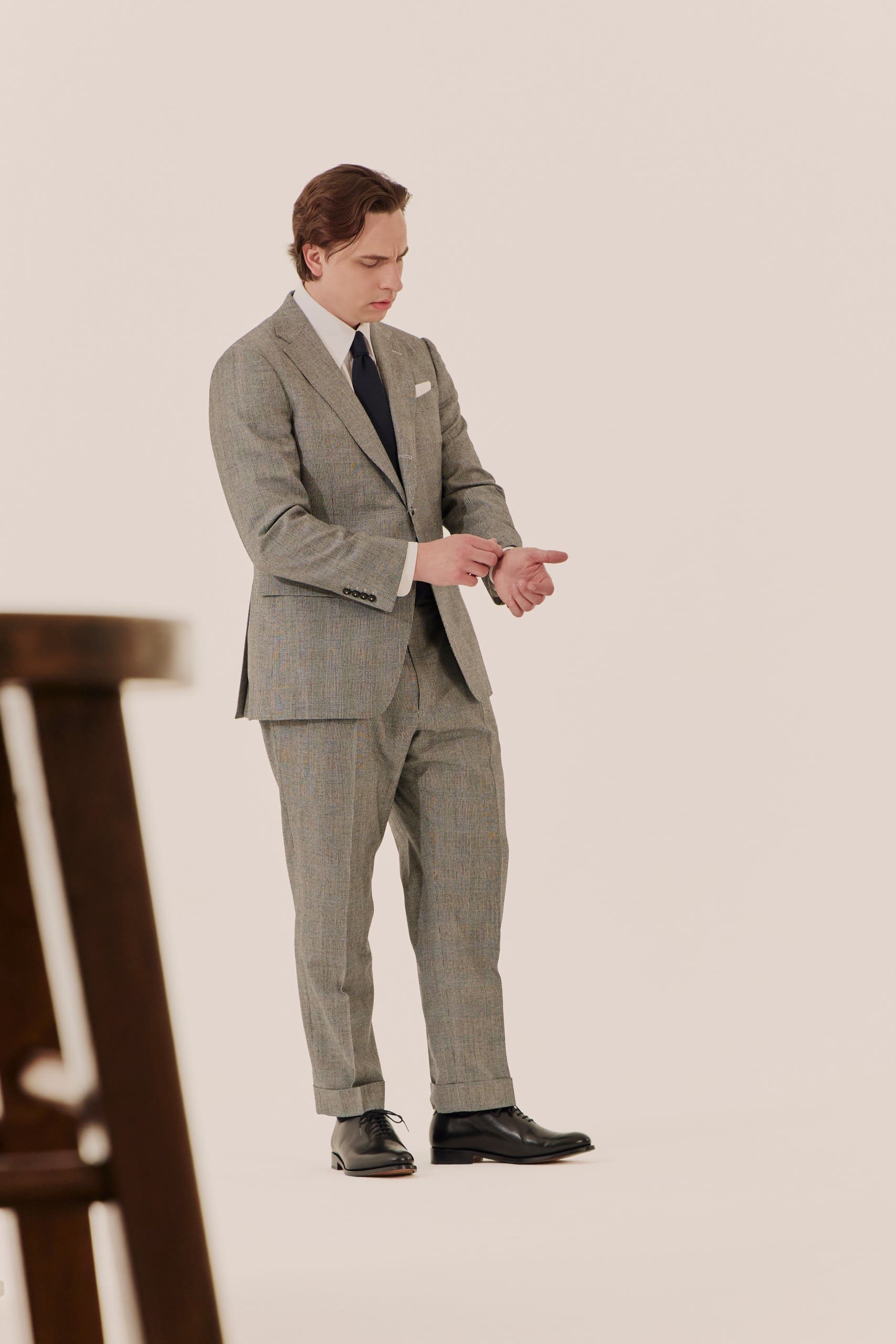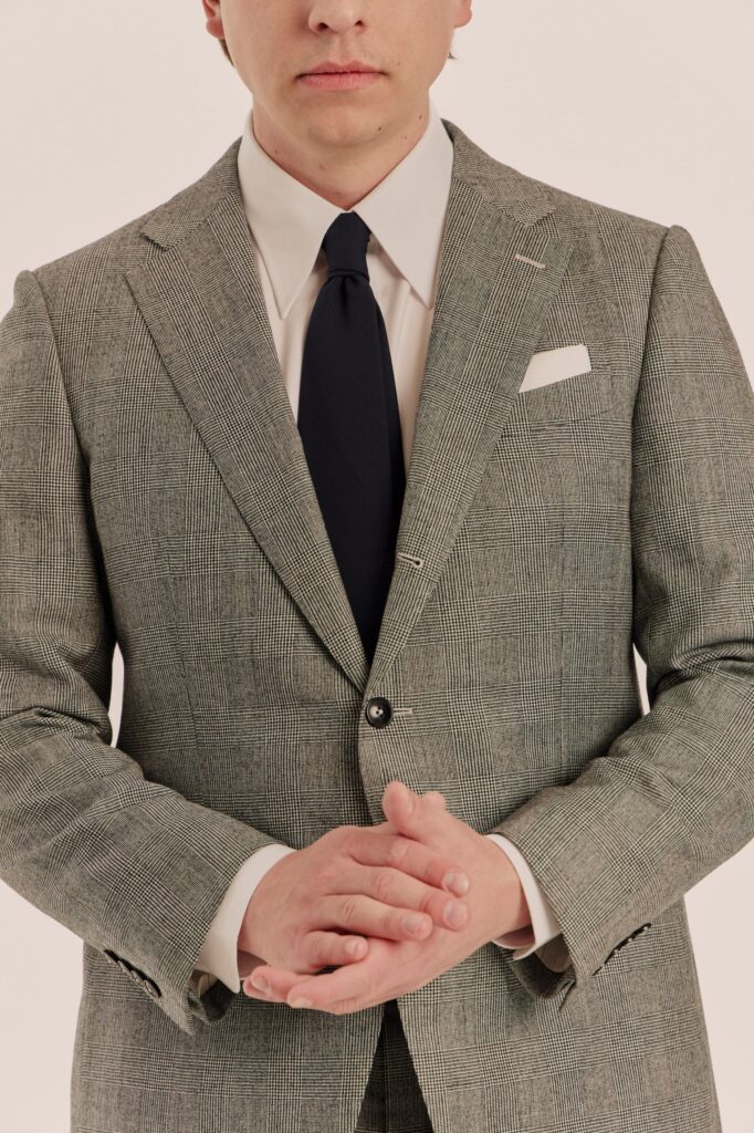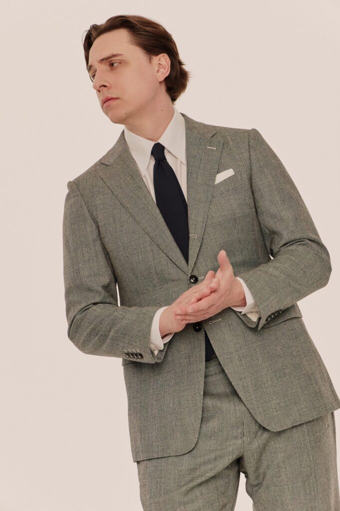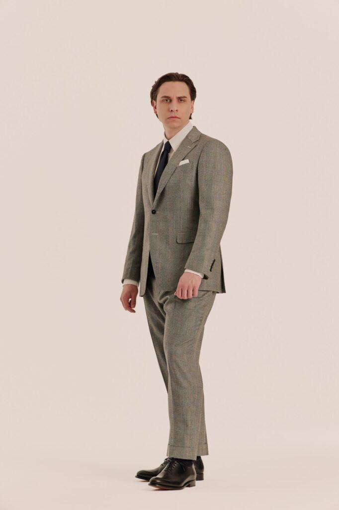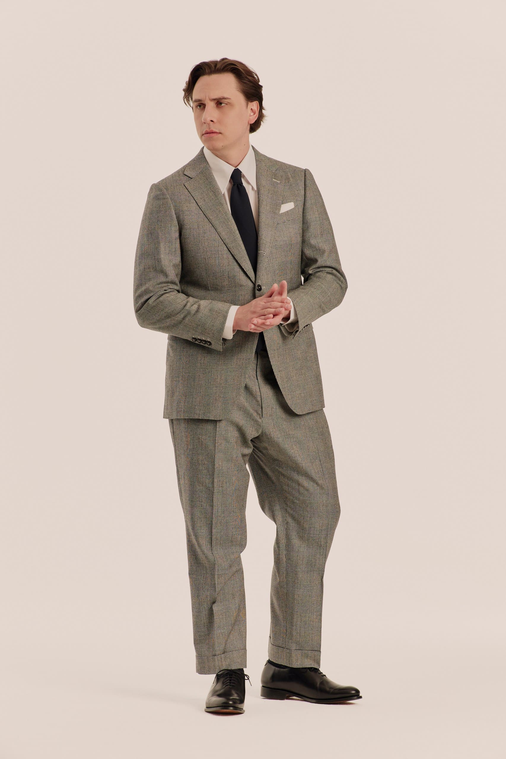 Однобортный классический «Уэльский» из фланели VBC в оттенке Silver Grey. В английской традиции это формальный костюм. В российской реальности – строгий деловой. Мягкое итальянское плечо и облегчённая full-canvas конструкция дают комфорт в движении, сохраняя собранный силуэт и ощущение структуры. Это костюм для взрослого мужчины, для которого важны порядок и дисциплина даже вне жёсткого дресс-кода.