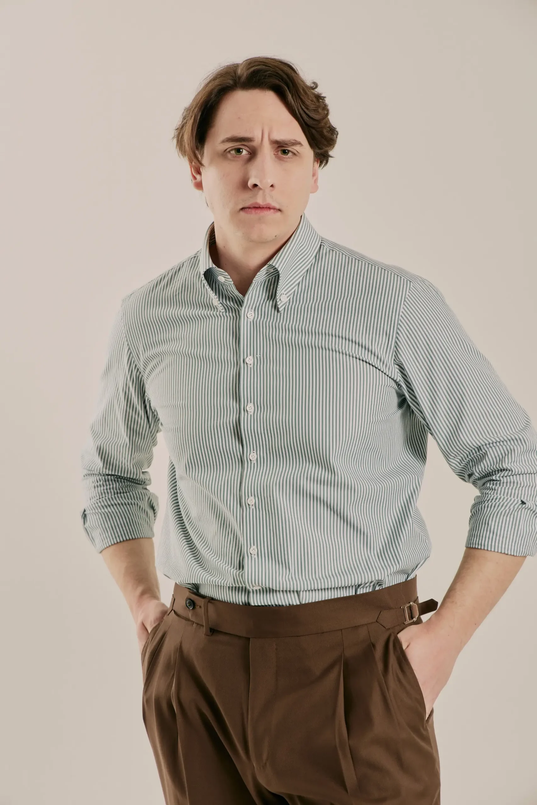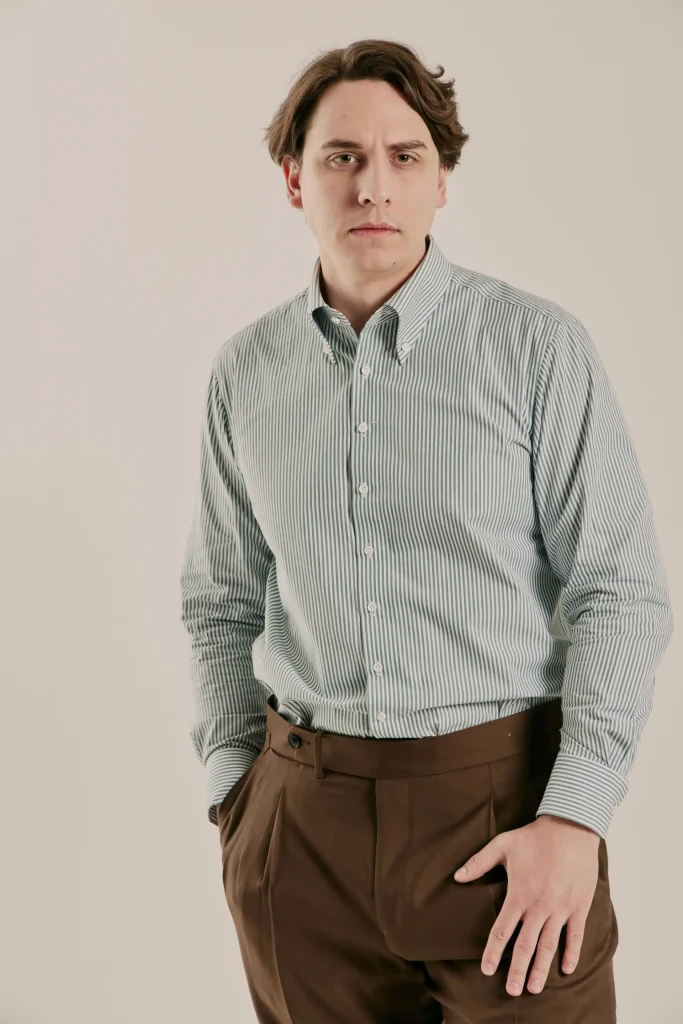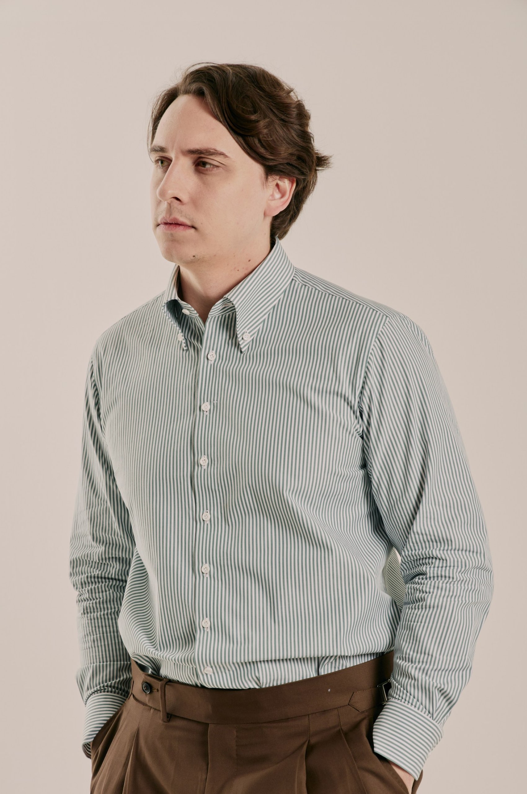 Классическая сорочка на каждый день, выполненная из итальянского поплина Canclini — ткани, которая сочетает мягкость, плотность и лёгкий благородный блеск. Воротник button down сохраняет форму даже без галстука, а сама конструкция продумана так, чтобы сорочка комфортно сидела под пиджаком или трикотажем. Универсальная база для современного гардероба мужчины, который ценит качество, посадку и спокойную элегантность.